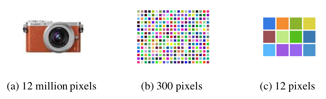 How many distinct pictures can you generate from (a) a smart phone camera shown with 12 million pixels, (b) a grid with 300 pixels, and (c) a grid with just 12 pixels?