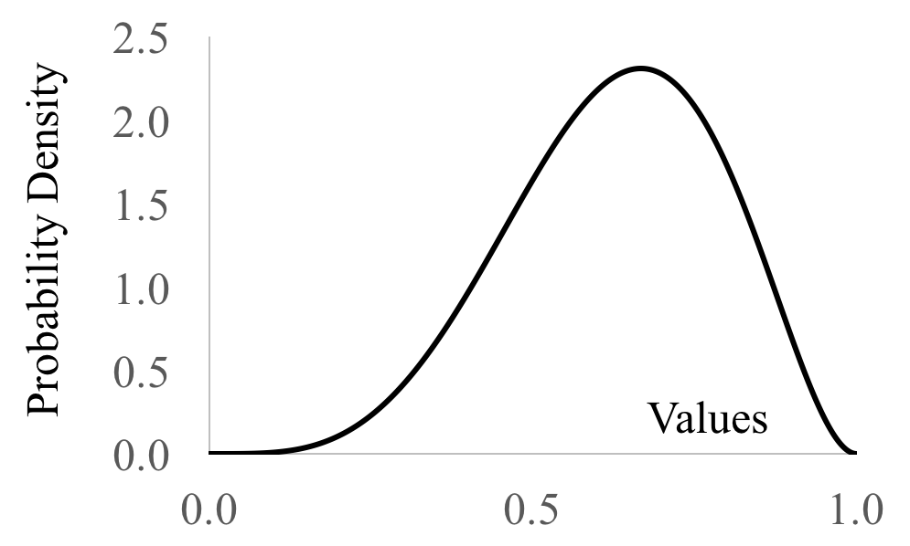 | Parameters: | $a > 0$, the number successes + 1 $b > 0$, the number of fails + 1 |